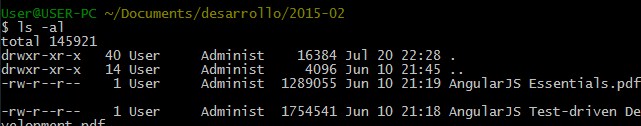 ls -al: Extiende la funcionalidad de listar, permitiendo ver el detalle del contenido de la carpeta, incluyendo archivos ocultos.